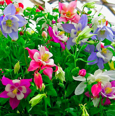 Hoa Bồ Câu - Mix Nhiều Màu (Aquilegia caerulea) là mix nhiều loại lai F1 cho bông to, và ria bông dài; hoa màu xanh đậm, hồng, đỏ, violet, trắng và vàng. Trông rất tuyệt trong vườn đá, rìa vườn và bông cắm. Cây cần che lưới lan hay trồng nơi bán nắng ở vùng khí nóng.