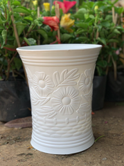 Chậu trồng cây nhựa PP vân hoa mai màu trắng bền đẹp - Số 3