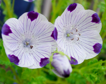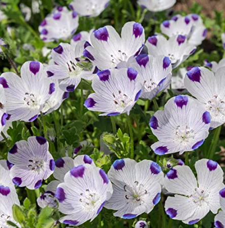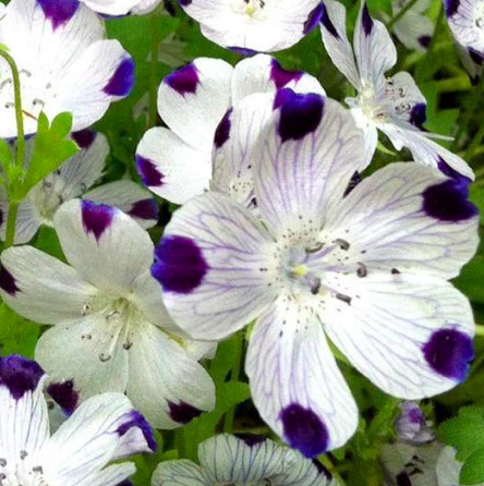 Hoa Tình Yêu – FiveSpot (Nemophila maculata) hoàn hảo trong vườn hay chậu, chỉ cao 15cm và rủ trải rộng 30cm.
