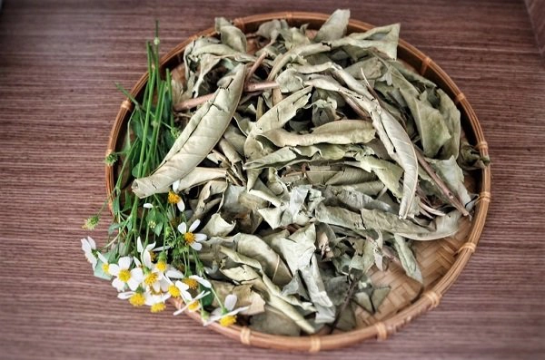 Pha loãng nước lá vối khô với nước sạch, chờ cho nước nguội bớt, chỉ còn hơi ấm thì tắm