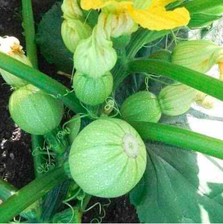 Hạt lai F1; Rất sai quả, ra quả tập trung nên trông lên chậu rất đẹp!; cành dài nên dễ thu hoạch; Quả xanh nhạt, tròn, đáy quả bè ngang nên quả ngồi thẳng khi đặt lên bàn. Thu hoạch khi quả to 5 – 8cm vì ngon nhất. Kháng bệnh sương mai, virus vẽ bùa dưa hấu và virus vẽ bùa bí ngòi ở mức trung bình; Thu hoạch sau 40 ngày từ khi chuyển chậu.