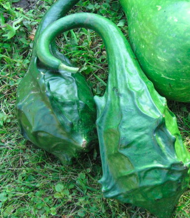 Mang hình dáng tiền sử, gân nổi to rõ, cổ cong, dài 40- 60 cm, đáy bát to 20cm, nặng khoảng 2kg, được người da đỏ Cherokee dùng làm trang trí lều xông, và phổ biến trong thủ công mỹ nghệ Châu Âu. Giống bầu này có sức thu hút chú ý vì lạ mắt. Thích hợp trồng leo giàn và thu hoạch sau 125 ngày, khoảng 20 trái/cây.