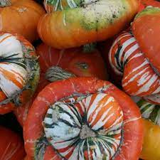 Bí Mũ Thổ Nhĩ Kỳ (Cucurbita maxima) giống bí độc đáo hiếm có không những ăn ngon và trang trí rất đẹp. To 20cm. Trữ tốt trong 100 ngày. Nhu cầu nước ẩm thường trực.