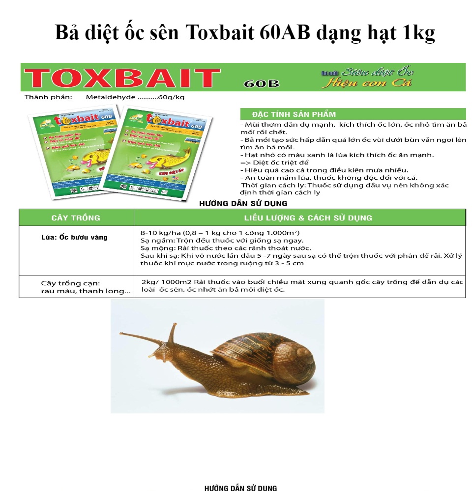 Metaldehyde 60g/kg , Chất dẫn dụ và phụ gia 940g/kg