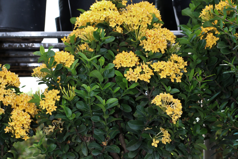 Cây bông trang vàng trung bình cao từ 1-2 m, thuộc loại cây tiểu mộc, thân gỗ. Thân cây phân thành nhiều cành. Cành nhẵn, dạng bụi nhỏ màu nâu nhạt hoặc màu xám nhạt.