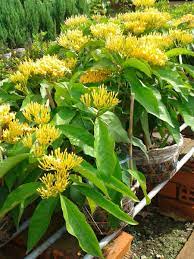 Thân cây phân thành nhiều cành. Cành nhẵn, dạng bụi nhỏ màu nâu nhạt hoặc màu xám nhạt. Lá bông trang vàng mọc đối xứng, bìa liền dài…