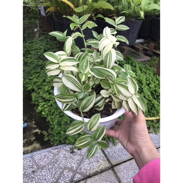 Cây rau trai cẩm thạch với màu cẩm thạch đẹp mắt bạn có thể trang trí ban công, quán cà phên đặc điểm: cây có lá màu xanh pha trắng, thân cây bò rũ dài, ưa nắng toàn phần hoặc bán phần.