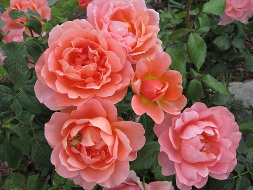 Hoa hồng bụi Sweet Fragrance (Ping Lim, Mỹ – 1991) tầm 40 cánh hoa, mùi thơm ngọt, dáng hoa cổ điển, sai hoa, cây dáng thẳng – Hoa hồng bụi Sweet Fragrance có cam pha trộn màu hồng mơ, tạo nên 1 màu rất đặc trưng màu hồng cá hồi.