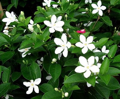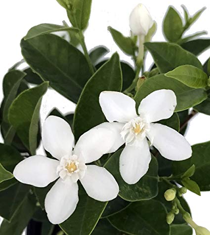 Lá Mai Chỉ Thiên màu xanh đậm dài khoảng 2,5 đến 6 cm và được sắp xếp đối nghịch. Hoa có năm cánh hoa, màu trắng, hình ống, hình ngôi sao có tâm màu vàng. Những bông hoa nở quanh năm ngay cả trong khu vực khó khăn.
