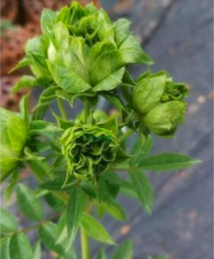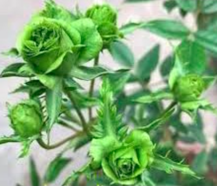 Hoa hồng xanh Jane Green thuộc dạng bụi thấp chỉ cao 40cm – 50cm, dạng hoa chùm, kích thước hoa nhỏ xinh từ 3cm – 5cm có mùi thơm nhẹ. Nhưng ít ai biết rằng, cây không có cánh hoa mà bông hoa được hình thành từ những lá đài, toàn thân từ lá đến hoa đều đồng nhất một màu xanh.