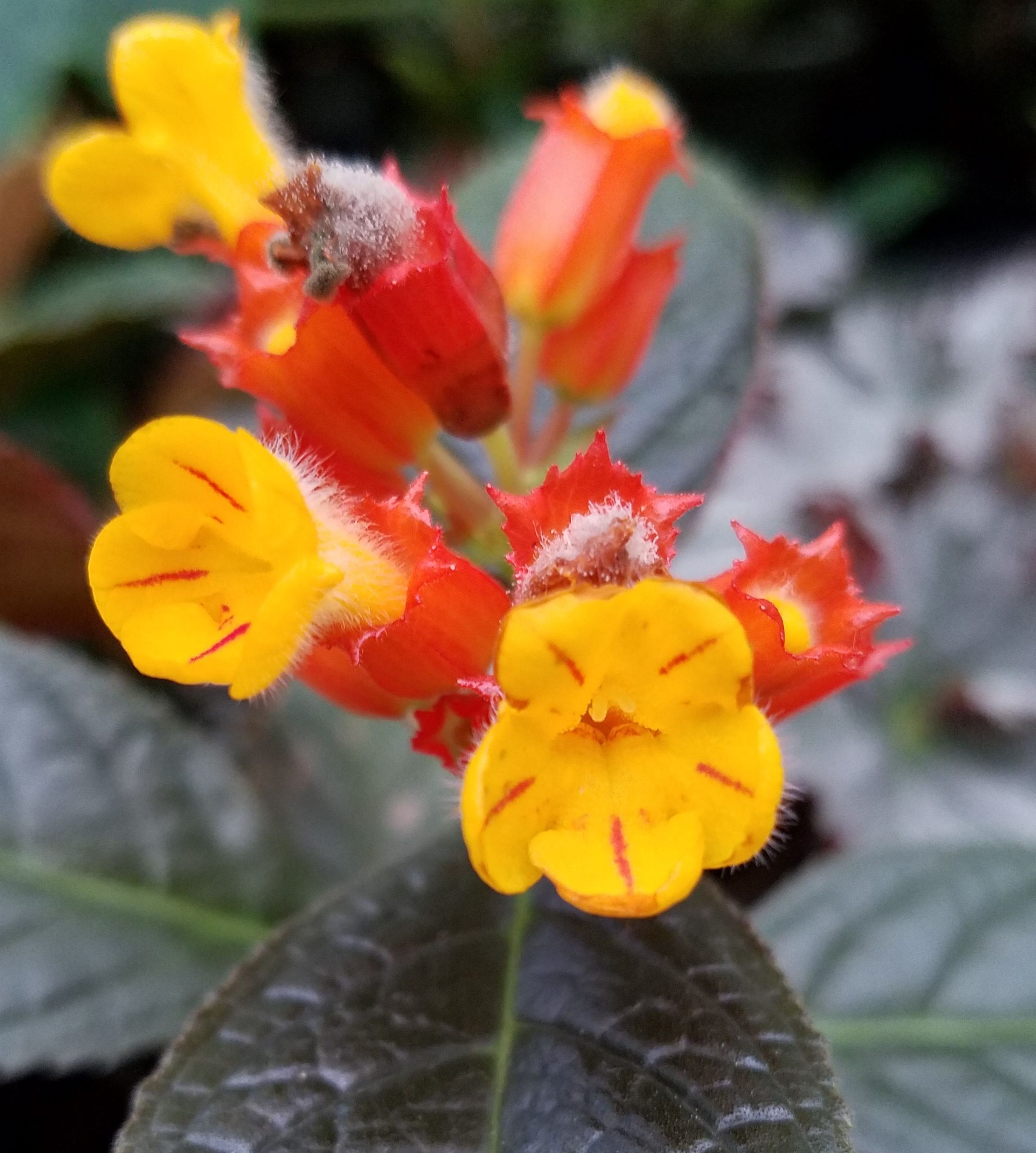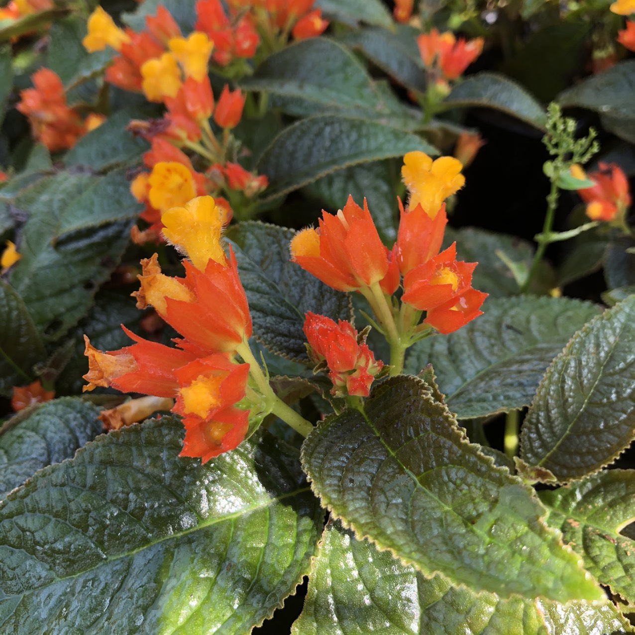 Hoa, quả, hạt: Cụm hoa ở nách lá, mọc xòe rộng, nhiều hoa dạng ống màu vàng có các vạch đỏ dọc ống và cạnh mép. Cánh hoa nở bền nhất là cánh đài màu đỏ cam.