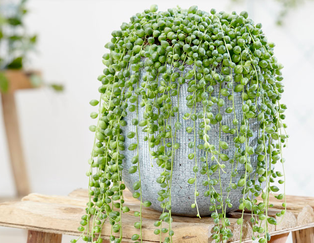 Sen đá giọt nước var có nhiều tên trong tiếng Anh, bạn có thể gọi nó là String of Beads, String of Pearls hoặc String of Watermelons đều được. Nhìn từ xa, cây như những chậu cây thân dây vì với đặc điểm thân mọc rũ xuống, thành ra người trồng thường sẽ treo chậu cây lên chứ không phải đặt dưới đất. Điểm nhận biết tiếp theo có thể dễ dàng nhận ra là trên thân cây, lá cây mọc căng mọng tròn như giọt nước, lớp vỏ bên ngoài tách ra để lộ bên trong nhìn như mắt nai nên sen đá giọt nước còn được gọi là sen mắt nai. Cây thuộc giống hoa cúc, mọng nước, đặc tính giống với thực vật thân bò, khi trưởng thành có thể dài tới 90cm.