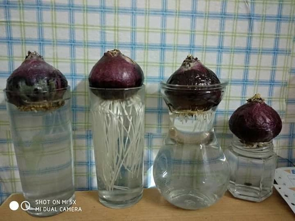 - Còn trồng vào chậu có đất thì thoải mái hơn, và cũng không cần chăm sóc nhiều, có thể cho một ít đá trắng hoặc màu phù hợp lên phía trên mặt củ để chậu đẹp hơn và nhìn bắt mắt hơn.