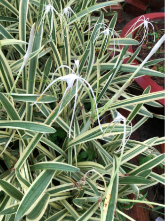 Hoa của cây cao khoảng 60 – 70 cm và mỗi đài có khoảng 4- 8 bông hoa, trên mỗi hoa có các nhị hoa dài màu xanh, đầu nhị hoa màu cam và có hương thơm nhẹ.