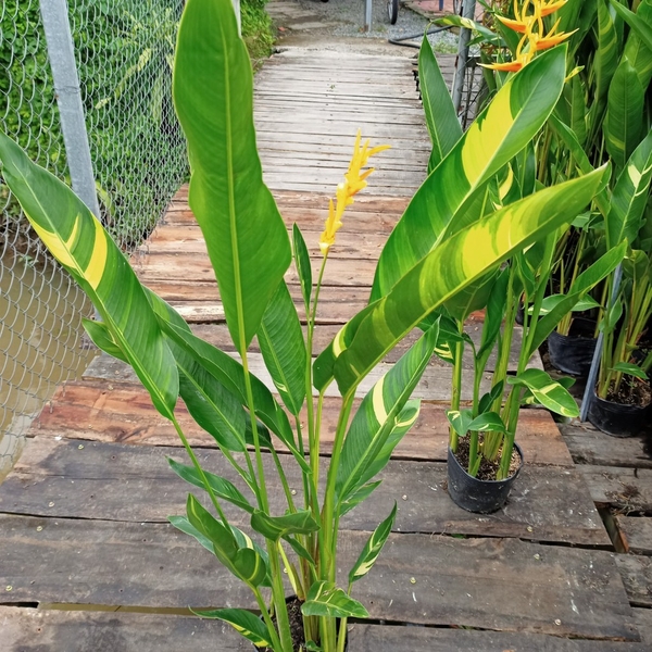 Cây chuối mỏ két cẩm thạch là loài cây thân thảo mọc thẳng đứng màu xanh lá cao đến 1.5 m. Các lá cây dài và nhọn; đặc biệt rất nổi bật của những chiếc lá pha lẫn màu xanh và trắng. Mỗi lá bắc ôm một bông hoa có màu giống lá bắc hoặc khác, thường là màu vàng.