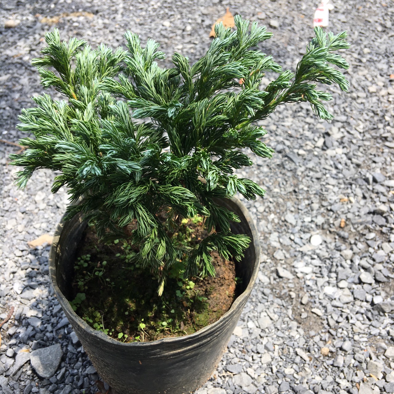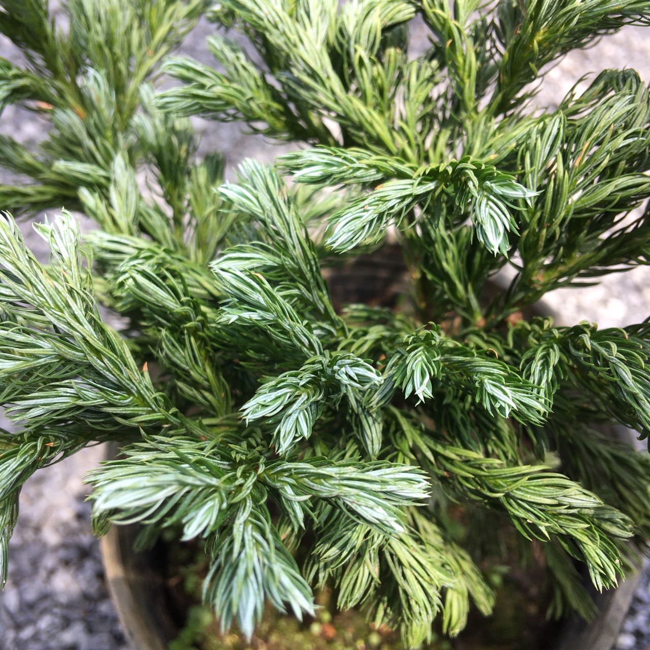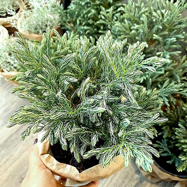Đối với cây tuyết tùng để bàn thì thân nhỏ, lá mọc um tùm, thường không có hoa và quả, cây tỏa ra một mùi thơm nhẹ