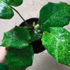 Mặt lá còn có các vệt xanh đậm kéo từ gân chính đi ra, mặt dưới của lá có màu hơi hồng đỏ.