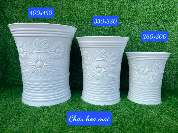Chậu được làm từ nhựa trắng 100% nên rất đẹp và bền.