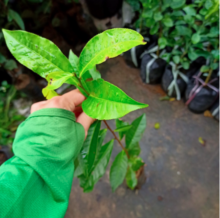 Lá thật: phát triển hoàn thiện trên cành chè theo những thế khác nhau.
