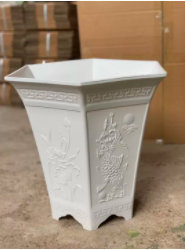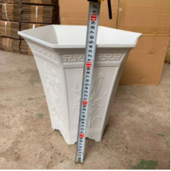 Trên chậu có hoa văn nỗi, và màu sắc trắng nên tôn lên vẻ đẹp sang trọng,