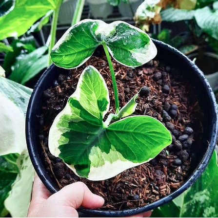 Mickey Mouse Taro – chiếc cây đặc biệt trong họ hàng nhà Alocasia. Hay còn có tên là Xanthosoma atrovirens ‘Variegatum Monstrosum’. Thường cao tới 80-100cm và tạo điểm nhấn tuyệt vời trên các bồn hoa lớn … là một “kẻ hút mắt” thực sự.