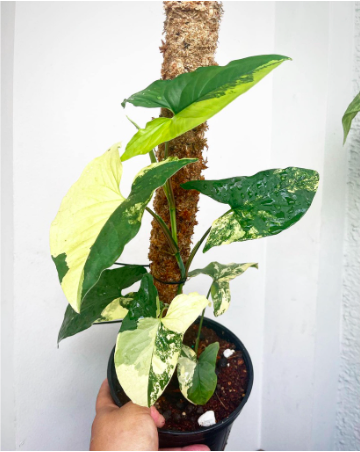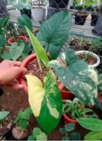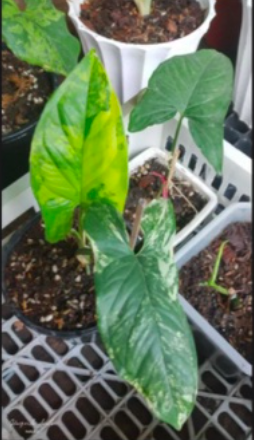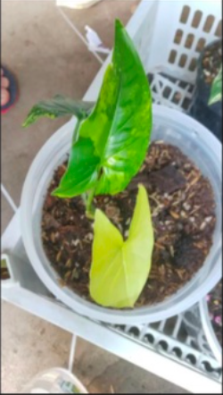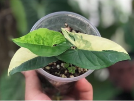 Syngonium aurea họ Syngonium dòng kiểng lá đáng sưu tầm. Lá đột biến màu vàng xanh từng mảng hoặc nửa lá lá trưởng thành xẻ 5 thuỳ