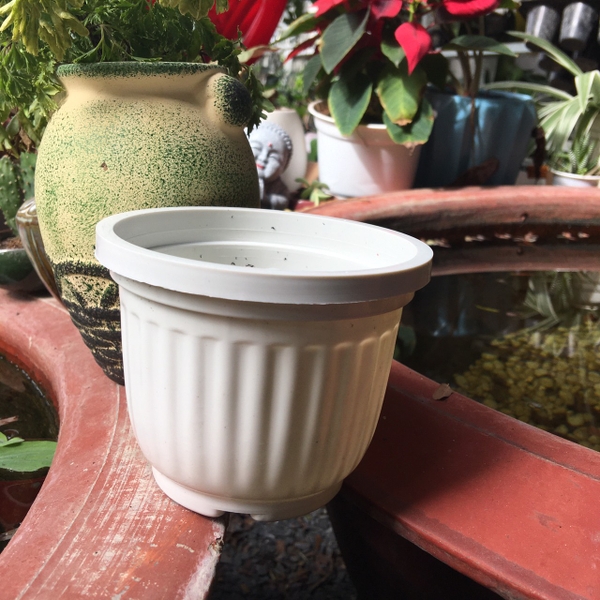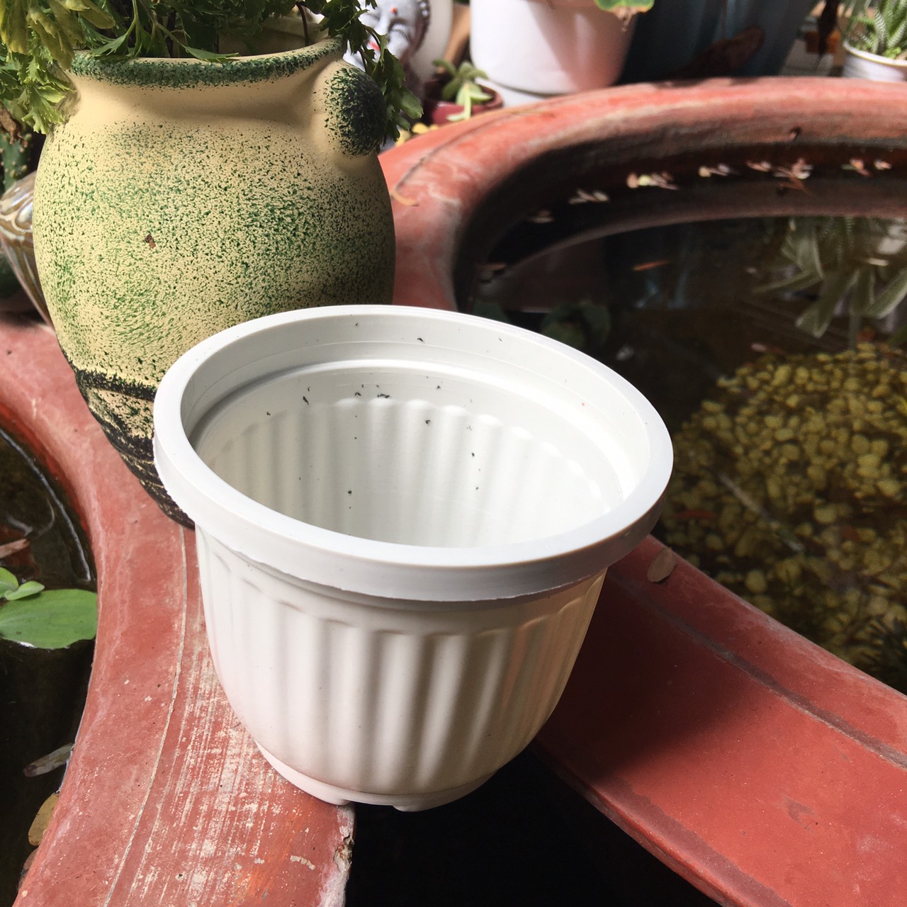 Chậu nhựa sen đá nhỏ màu trắng tròn 9x8cm, màu trắng có sọc