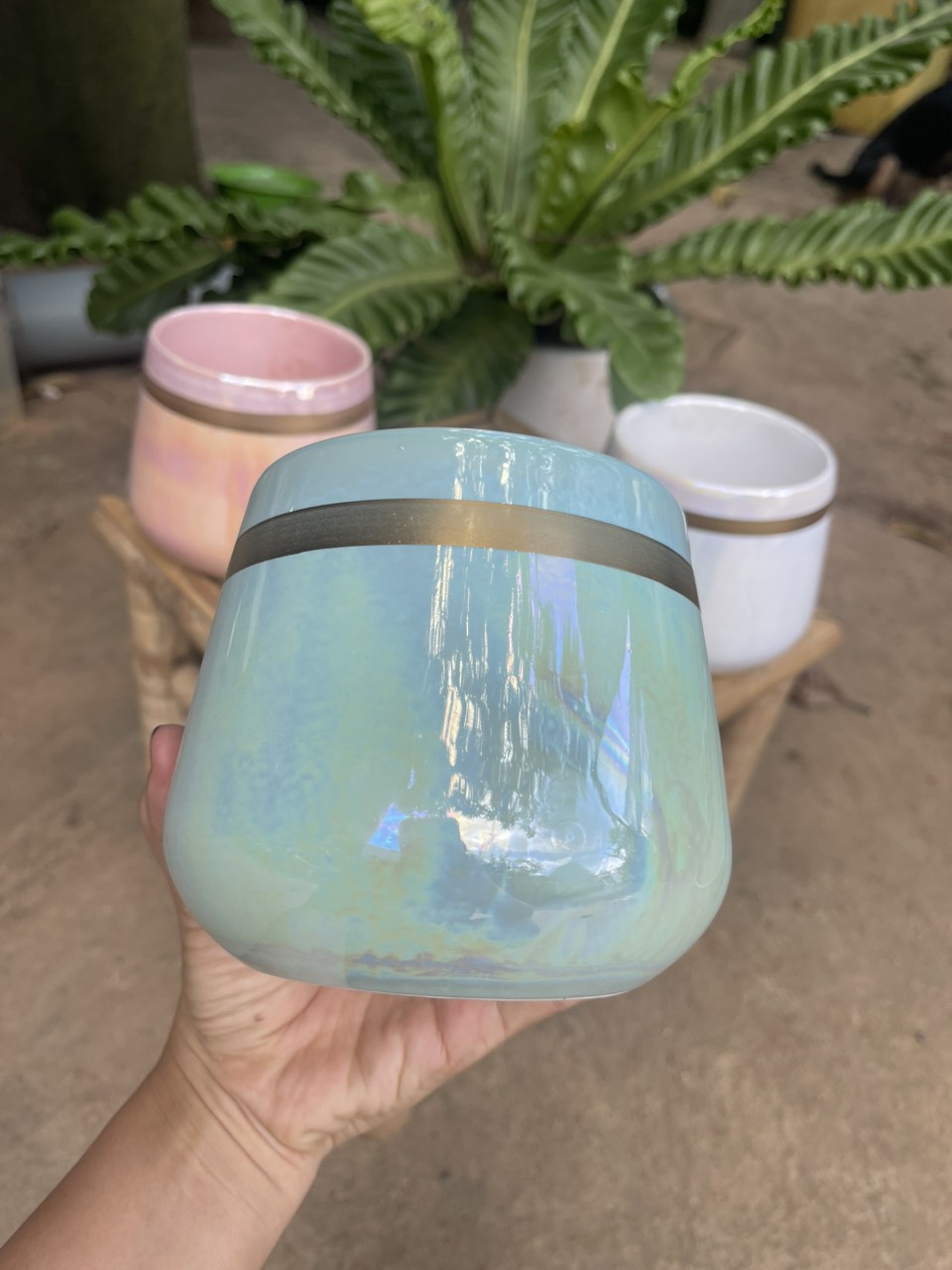 Chậu sứ men ngọc trai là mẫu chậu sứ có hình dáng cách điệu bo miệng và đáy, kiểu dáng mới lạ tạo điểm nhấn khác biệt. Nên chúng rất được yêu thích cho việc dùng trồng cây để bàn, tiểu cảnh trang trí cho bàn làm việc, bàn học, văn phòng,…