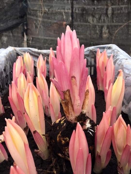 Chậu trồng: đường kính 18-20cm trồng 3 củ. Chậu 25-30cm trồng 5 củ…Cho giá thể vào chậu (dày chừng 5-10cm), đặt mầm củ hướng lên trên, chia khoảng cho cây phân bố đều trên mặt chậu, sau đó phủ giá thể dày 8-10cm (để hở đầu củ). Khi trồng xong phải tưới nước đảm bảo độ ẩm cho củ và giá thể.
