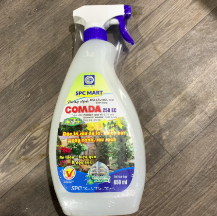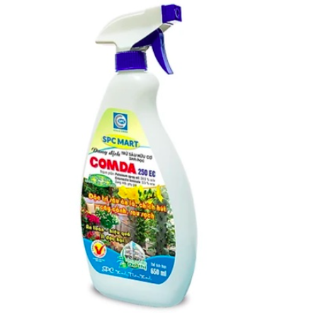 Mô tả: Chế phẩm trừ sâu pha sẵn tiện dụng COMDA 250EC là dung dịch trừ sâu hữu cơ, sinh học trừ sâu ăn lá, côn trùng như bọ trĩ, nhện đỏ, rầy, rệp sáp, rệp muội, bọ phấn… trên lan, hoa hồng, hoa mai, các loại kiểng lá và rau sạch. Comda 250EC là dung dịch pha sẵn tiện dụng nên bạn sẽ sử dụng được ngay mà không cần pha nước. Bên cạnh đó, vì Comda 250EC là dung dịch trừ sâu hữu cơ, sinh học nên sản phẩm an toàn, hiệu quả mà ít độc hại.