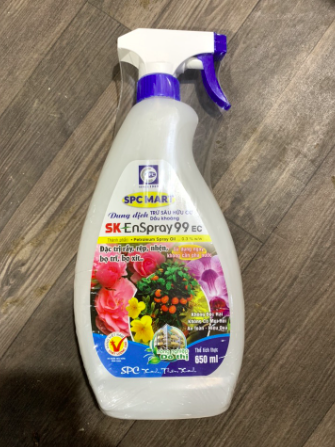 Dầu khoáng SK Enspray 99 EC là thuốc phổ rộng, hiệu quả cao trong phòng trừ nhện, rệp sáp, các loại rầy, bọ trĩ, bọ xít, sâu vẽ bùa, ruồi trắng, rầy chổng cánh… gây hại cây kiểng các loại, bonsai, hoa lan, hoa hồng, rau sạch, dùng ngoài trời hay cây trồng trong nhà lưới, sân vườn, trang trại đều được.