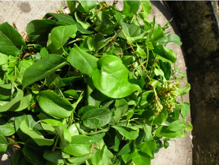Khi cây đã hoàn toàn bò trên giàn và đẻ nhánh thì có thể tiến hành thu hái lá hay cắt từng cành nhỏ