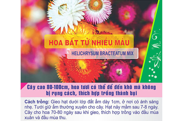Hoa bất tử thích hợp nhất là khi được gieo trồng vào mùa xuân, mùa hè hay mùa thu vì thế hãy gieo hạt giống hoa trong mùa này cây sẽ có khả năng sống cao nhất, phát triển nhanh nhất khi đó loài hoa này có thể đạt chiều cao trên 1m đó.