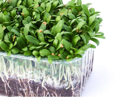 - Đến ngày thứ 3 mở bìa catton ra, đặt rổ rau mầm ra ngoài có ánh sáng hoặc ánh sáng nhẹ. Ngày tưới 2 lần sáng – tối. Sau 7 ngày có thể thu hoạch rau mầm