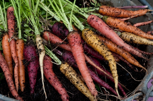 Cà Rốt Nhiều Màu (Daucus carota subsp. sativus). Nhiều màu khác nhau: đỏ, trắng, tím, vàng và cam. Thịt mêm, mượt ngọt. Mỗi củ 1 màu.
