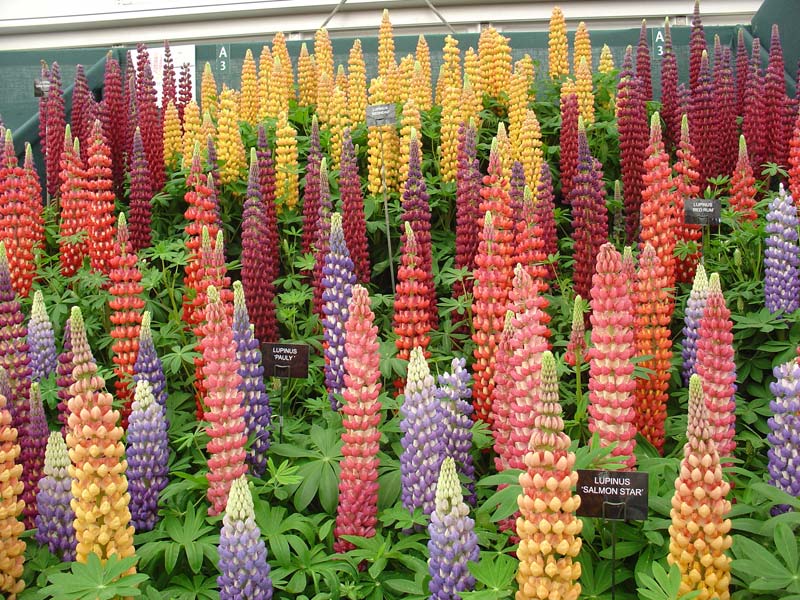 Hoa Lupin giống như những tòa bảo tháp vươn lên kiêu kỳ trong nắng. Một vẻ đẹp kiêu kỳ. Tuy nhiên, loài hoa này chỉ thích hợp để ngắm nhìn từ xa, bởi lá và hạt của hoa lupin đều có độc.