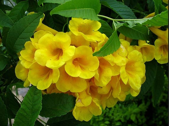 Cây Huỳnh liên, Cây Sò đo bông vàng – Là cây thân gỗ nhỏ, thân có nhiều cành nhánh, dạng lá kép lông chim, mọc đối nhau. Cụm hoa màu vàng giống hình chuông mọc ở đầu cành, rũ xuống trông rất đẹp mắt, quả nang dẹt dài từ 5-7cm lúc non có màu xanh, khi già thì chuyển sang màu nâu xám, thường thấy cây ra hoa vào tháng 3 đến tháng 5.