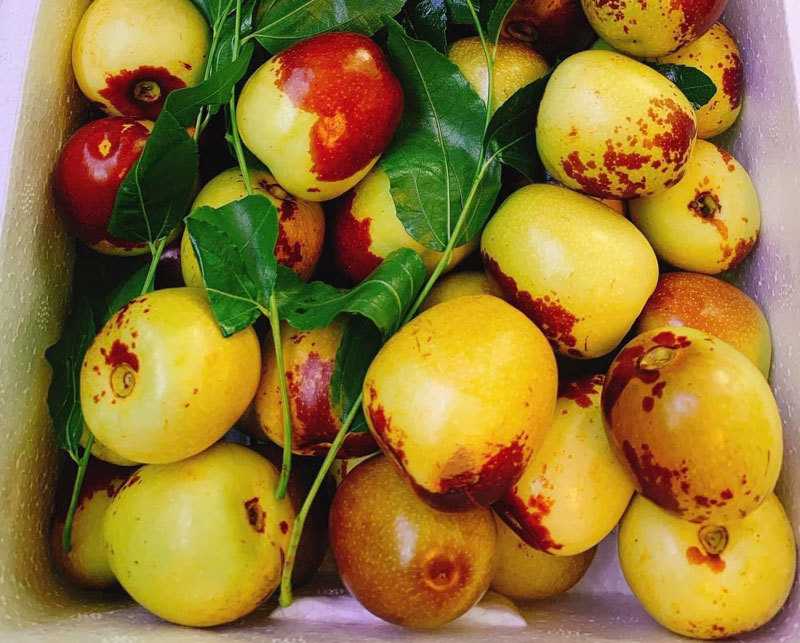 Từ khi trồng từ cây con giống đến khi thu hoạch vụ đầu tiên khoảng 15 tháng. Khi táo chín quả sẽ chuyển sang màu hồng đỏ đẹp mắt. Qủa to tròn và mọc đều xung quanh tán cây. Bạn nhẹ nhàng dùng kéo bấm cuống rồi xếp vào giỏ để nơi thoáng mát. Tránh xếp đè lên nhau sẽ khiến quả bị dập. Nếu xếp chồng nên bọc bằng lưới xốp.