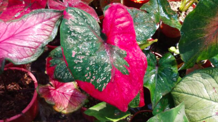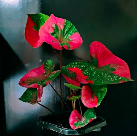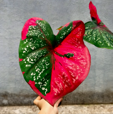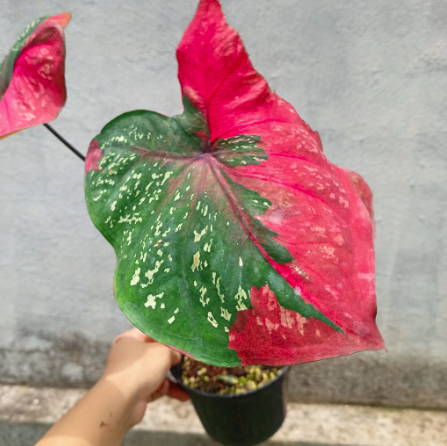 Với những vệt loang màu đỏ tươi trên nền lá màu xanh kèm theo đốm trắng, Caladium Baret mang một vẻ đẹp không lẫn vào đâu được giữa các loại Caladium khác.