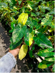 Cây trầu bà Philodendron Burle Marx Variegated là một trong những cây philodendron đầy màu sắc được nhiều người yêu thích. Lá có nhiều màu khác nhau từ vàng đến trắng lốm đốm và xanh lục, ngay cả phần thân dây leo của giống trầu bà này cũng cực kỳ đa dạng, có màu vàng hoặc sọc với màu xanh lá cây.