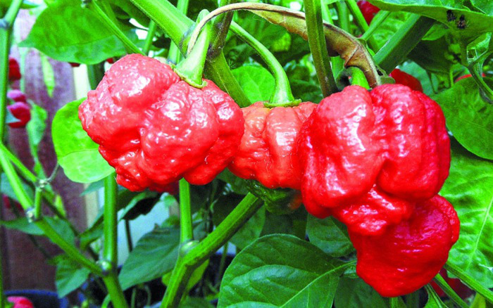 Giống cây được lai giữa giống La Soufriere “cực kỳ cay” từ đảo Saint Vincent thuộc vùng Caribe và giống Naga Viper từ Pakistan và được đặt tên là ‘Reaper’ do hình dạng đuôi quả của nó. Nó đã được mô tả là có hương vị trái cây, khi cắn miếng ớt đầu tiên cảm giác sẽ là ngọt ngào nhưng sau đó ngay lập tức sẽ chuyển sang cảm giác cay của “dung nham nóng chảy”.