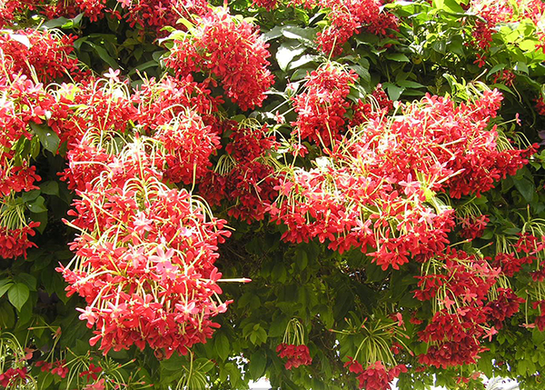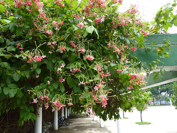 Sự giản dị của hoa sử quân tử thể hiện ngay ở cái cách mà cây leo lên, ở hình dáng hoa khi nở rộ. Từng chùm hoa nhỏ nhắn màu đỏ tươi mọc xum xuê trên nền lá xanh biếc như những ngọn lửa hồng cháy rực. Nhưng chính nét đơn giản, mộc mạc này lại giúp xua đi cái thô của ban công, nét trống vắng của góc vườn hiệu quả.