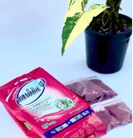 Thuốc tím Starkle G chỉ cần rải lên mặt chậu, thuốc sẽ tan và cây sẽ hút qua rễ và lưu dẫn toàn thân.